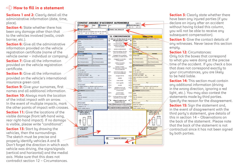NOTE: In special situations, if it’s a case of a smaller vehicle damage (small scratch or dent, or smaller accident without any other participant), with consent from the technical support and photos of the accident, you may only fill in the euro report without contacting the police.